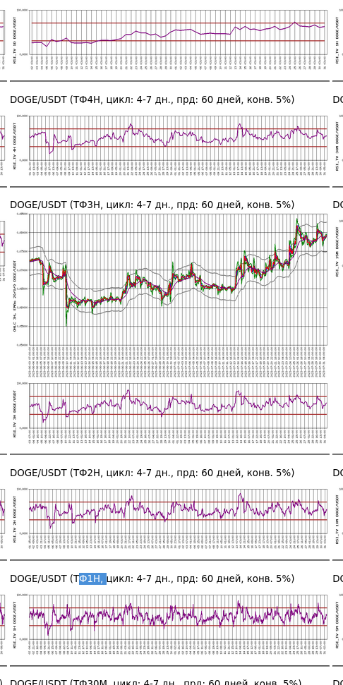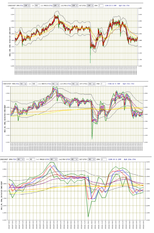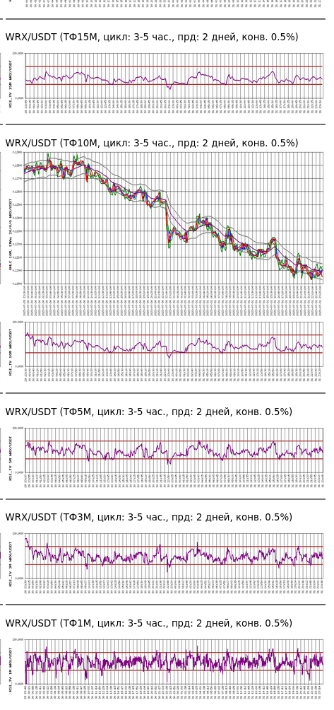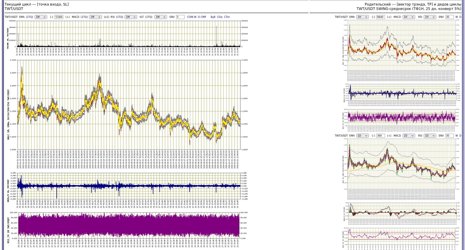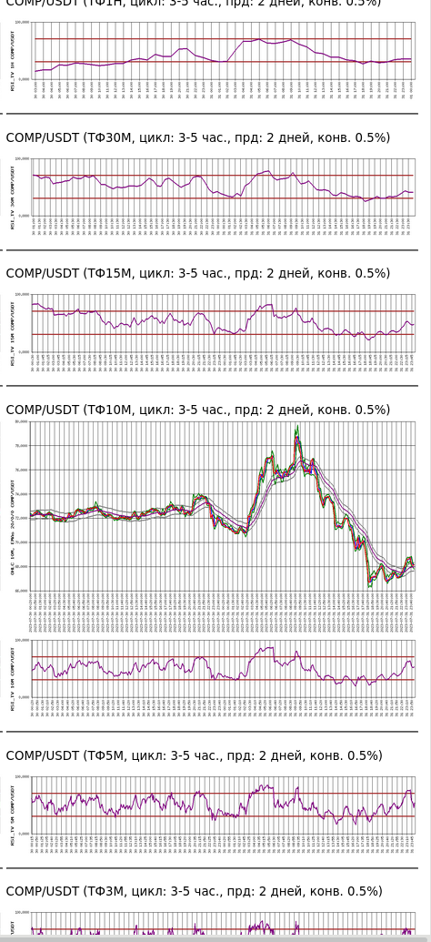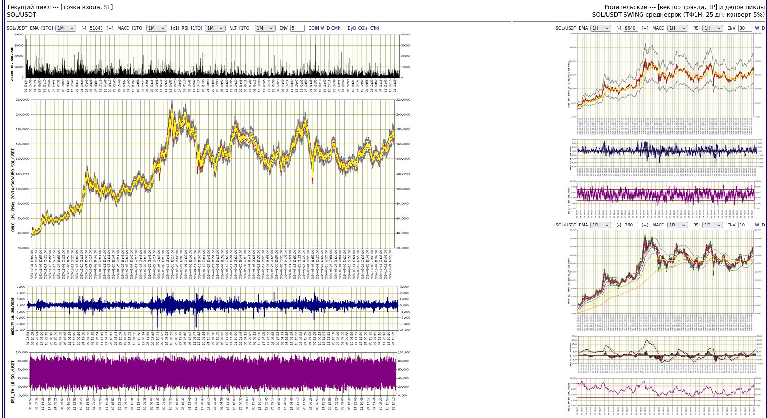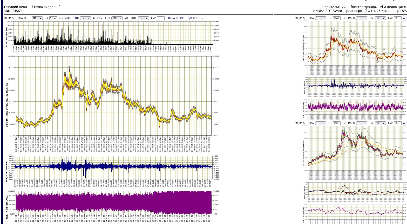 Пришла идея поместить на одном графике цены и 3 пары ЕМА, а под ними 3-4 графика MACD, соответствующих основным циклам, 3-4 графика RSI, и что еще нужно - обьемы и волатильность. Это получается дневной цикл, недельный, месячный,