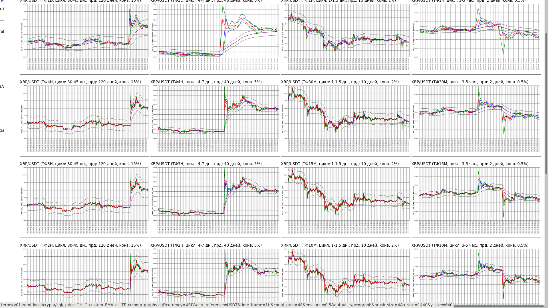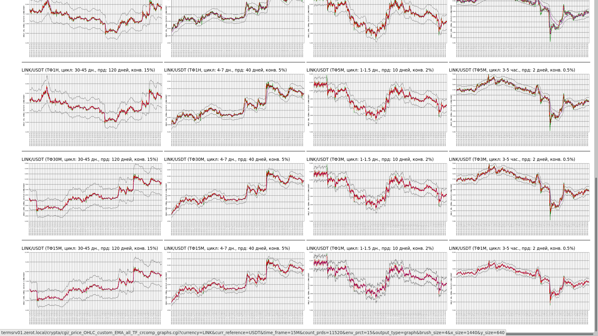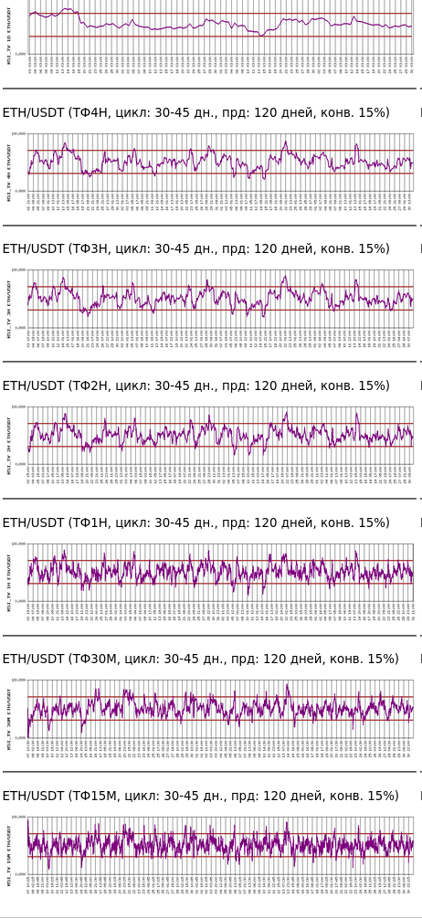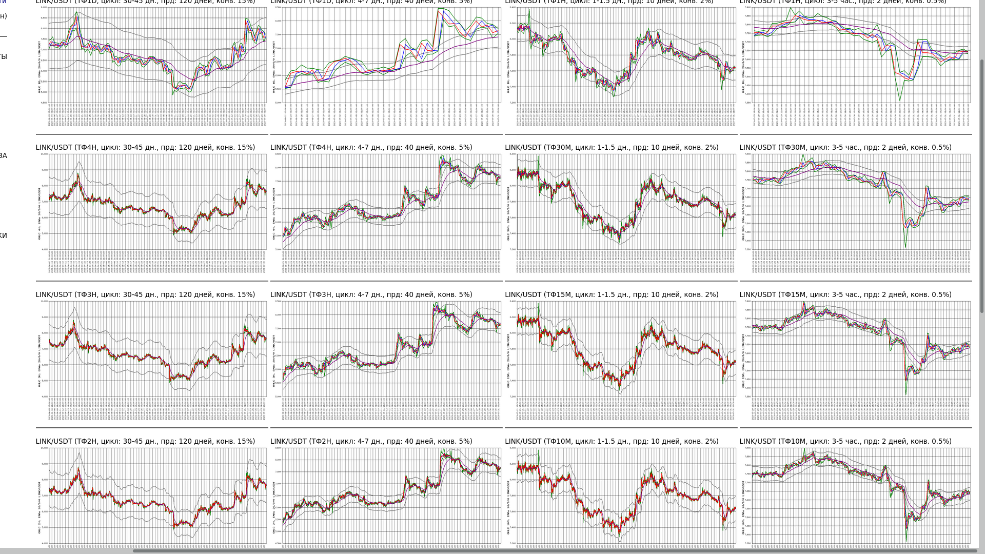 Такое исследование графиков на разных таймфрэймах нами проведено, и выводы подтвердились. Ниже - скрины аналитической формы. Графики разных таймфрэймов за один период размещены один