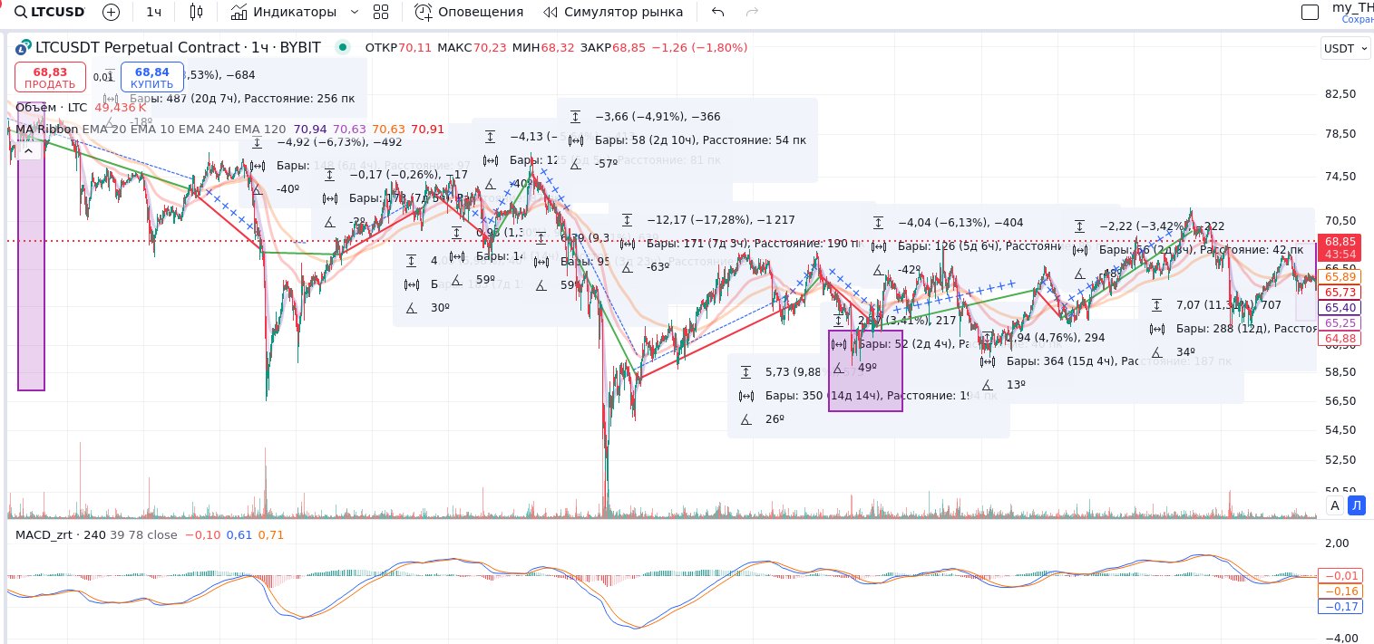 Тема 2. А вот выборочная проверка расчётов моего аналитического модуля и графического анализа средствами сайта Trading View. Результат предсказыем - аналитический модуль считает корректно в подавляющем большинстве случаев, простая