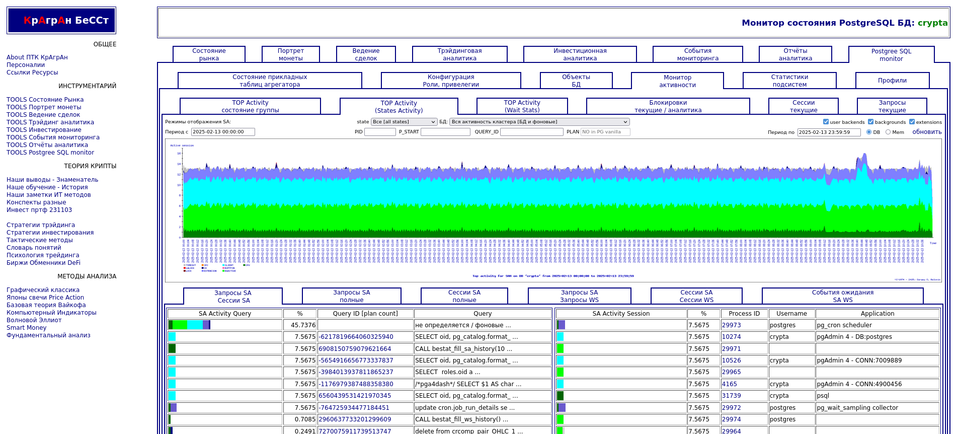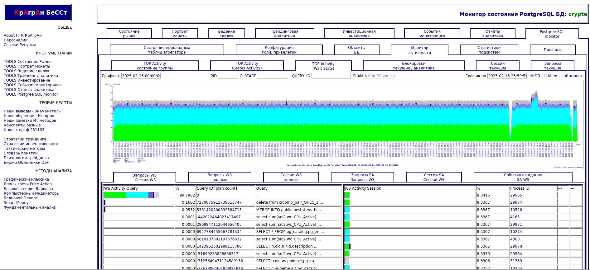продукта КрАгрАн - агрегатора и анализатора данных криптовалют, реализованного, как и коллекторы КоСиКУЛС четвертьвековой давности, на PostgreeSQL ... но в результате остоновился на ежесекундном срезе и не стал частить, хотя в 10-20