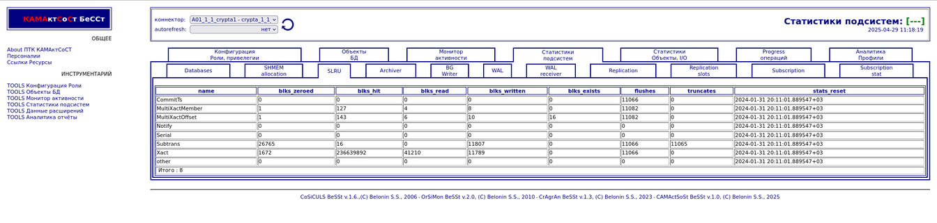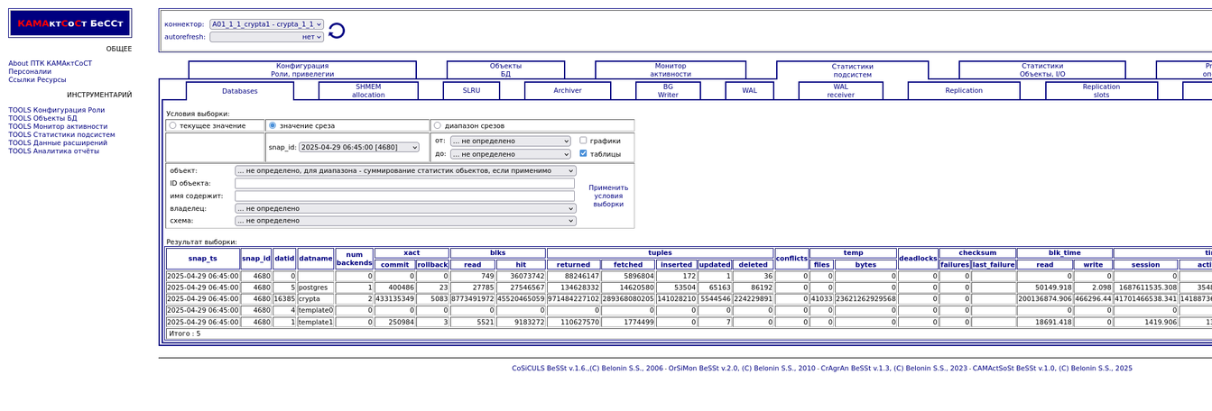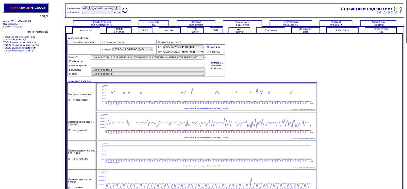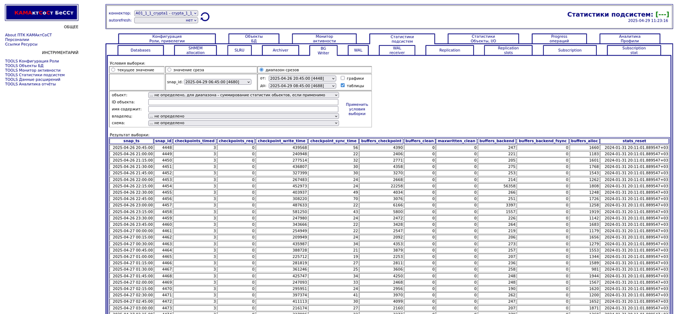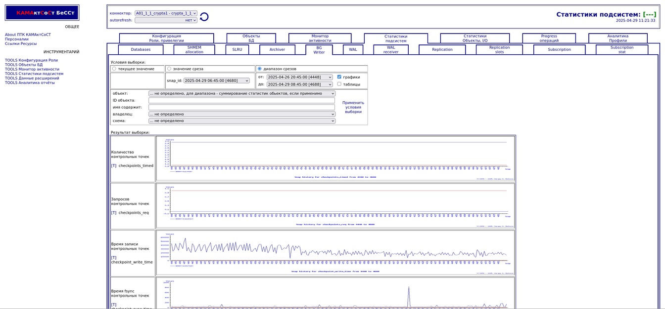 Компонента "История снапшотов". Статистики подсистем