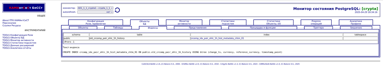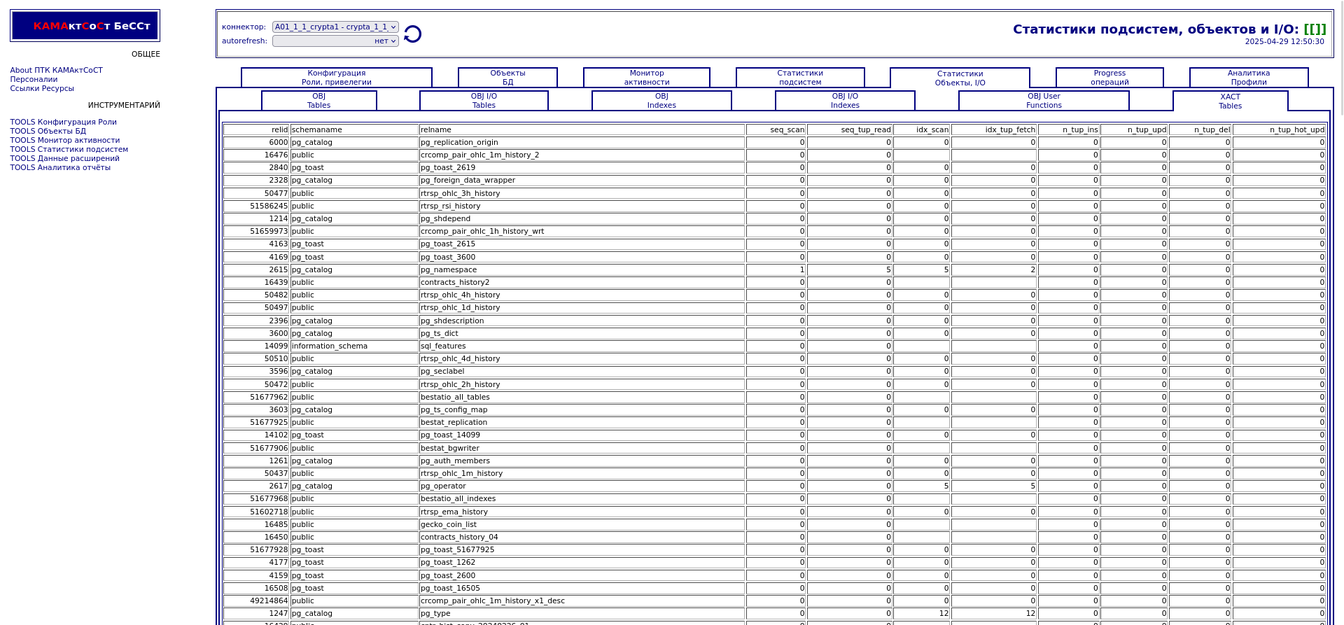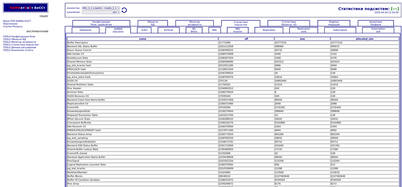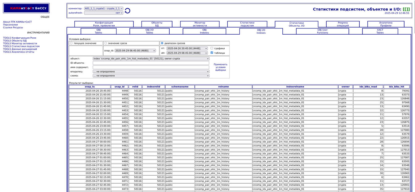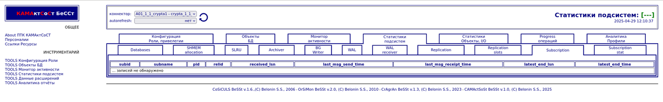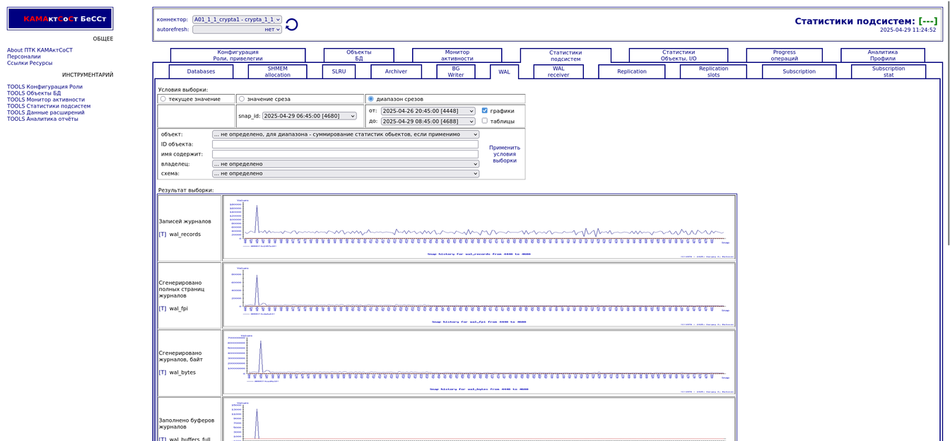Компонента "История снапшотов". Статистики подсистем