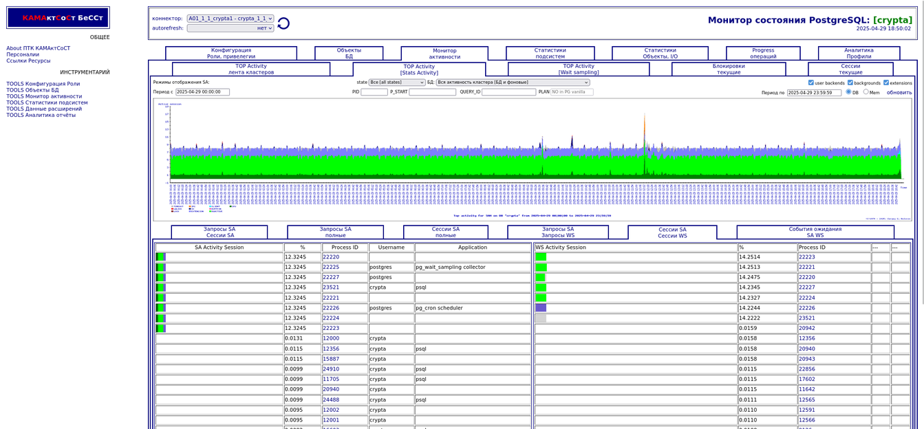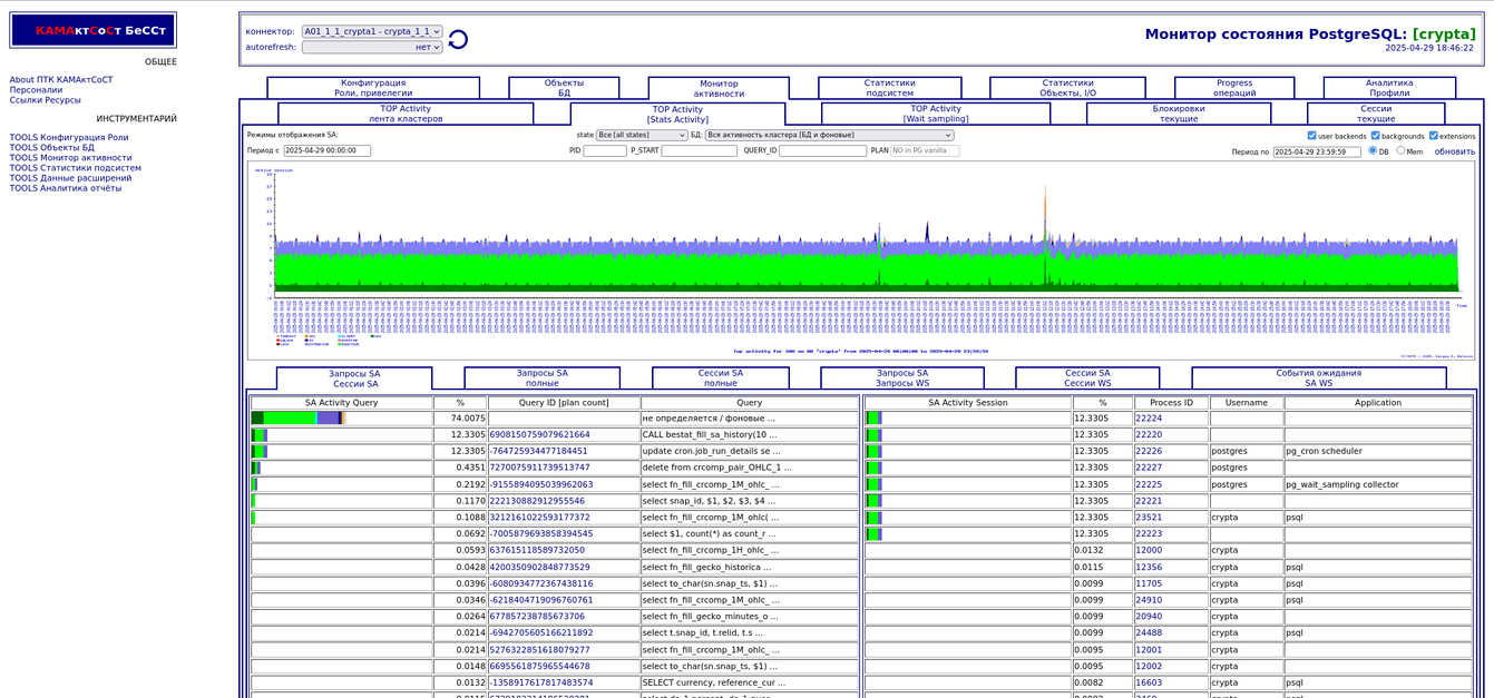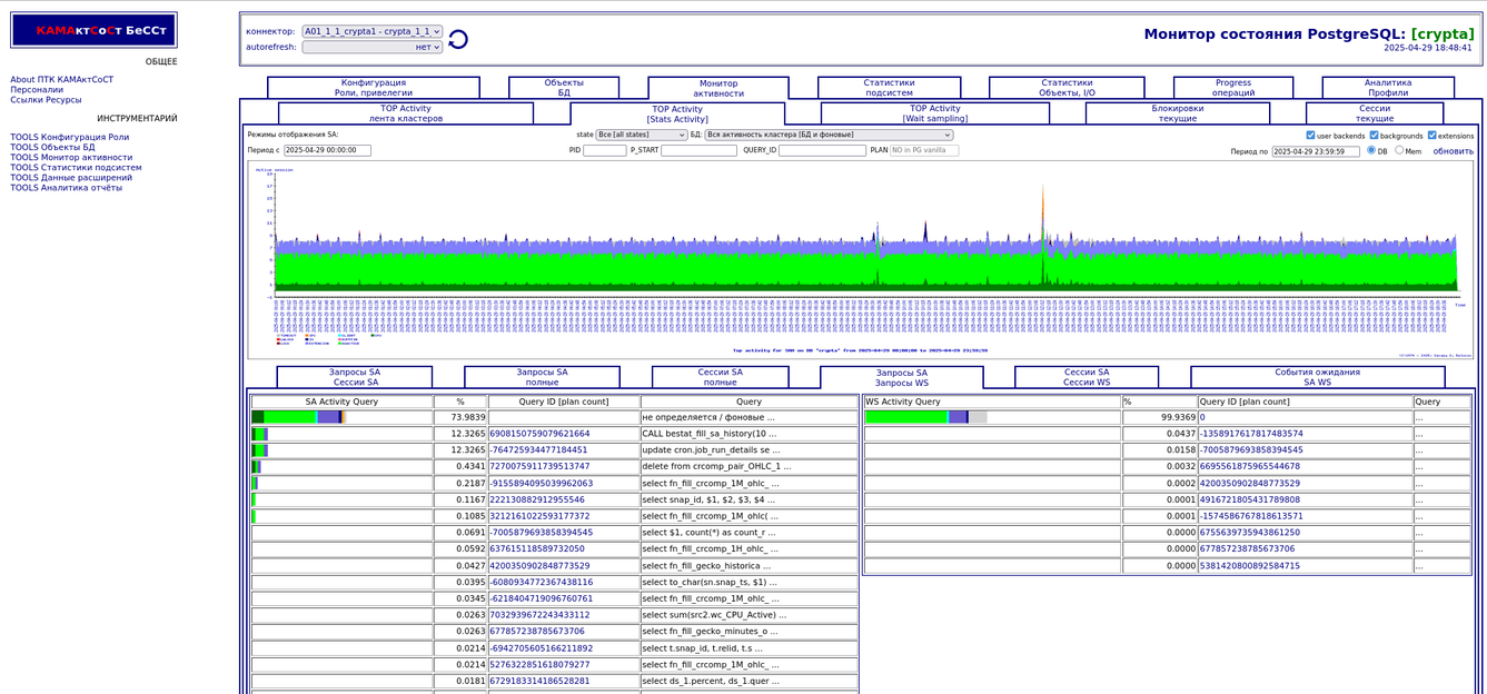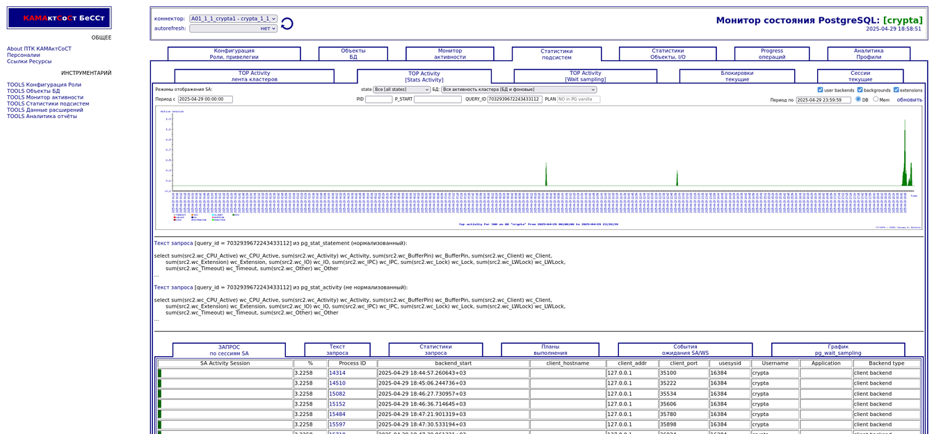 Компонента "TOP Активности". Разрезы по запросам, сессиям,