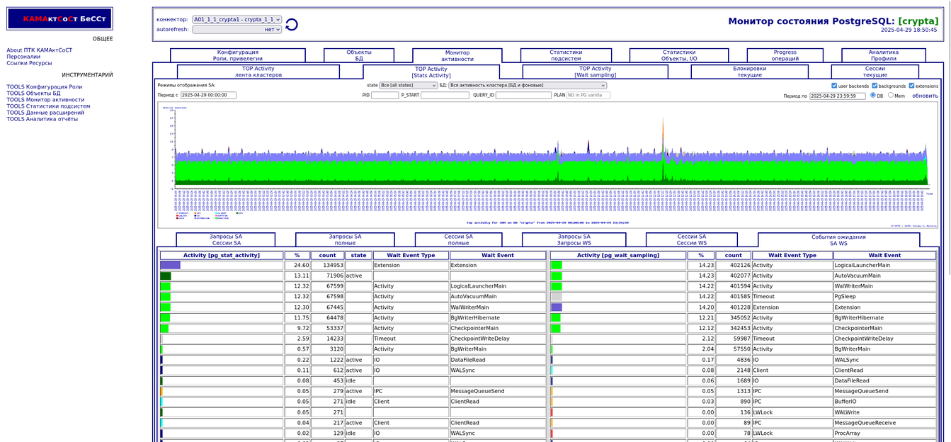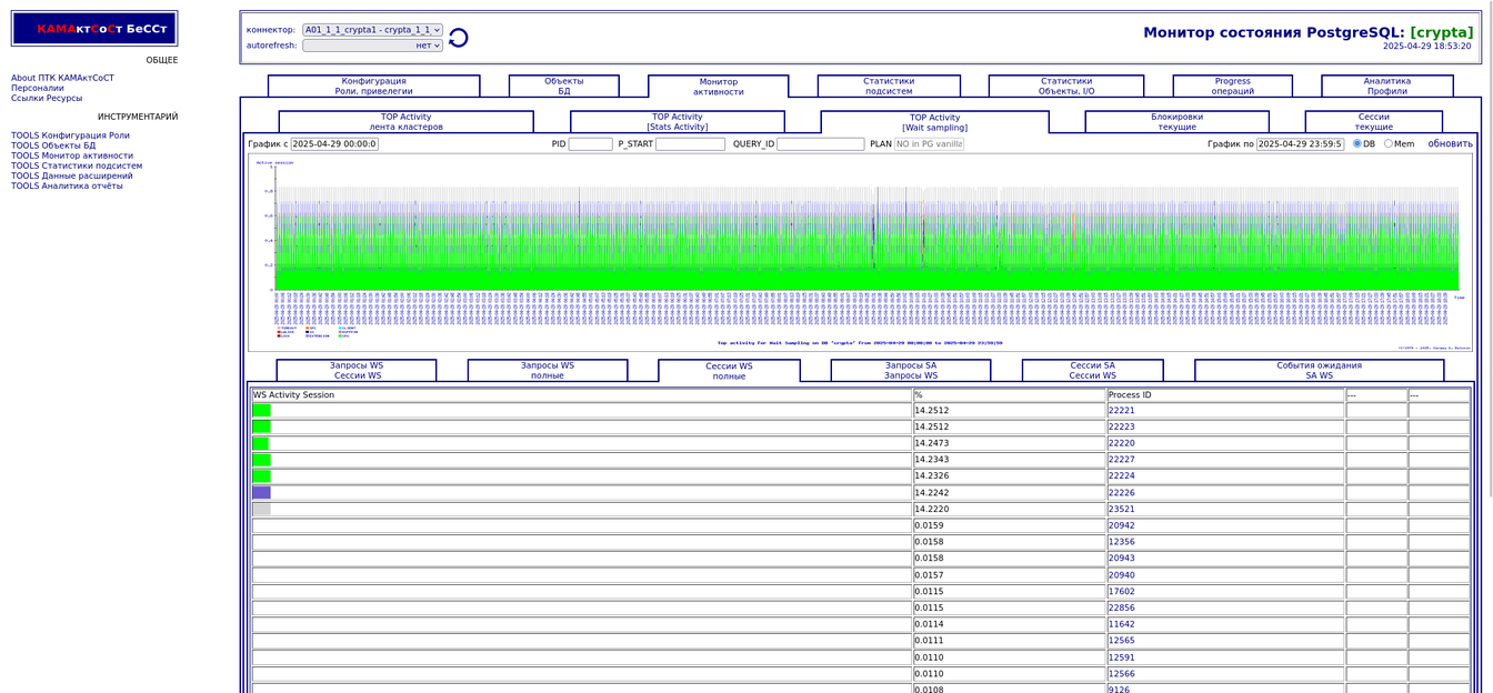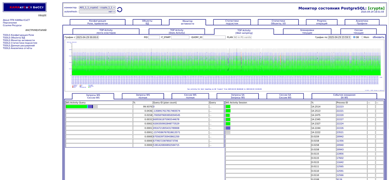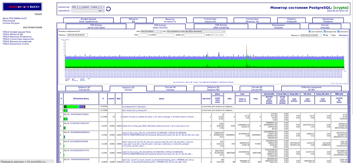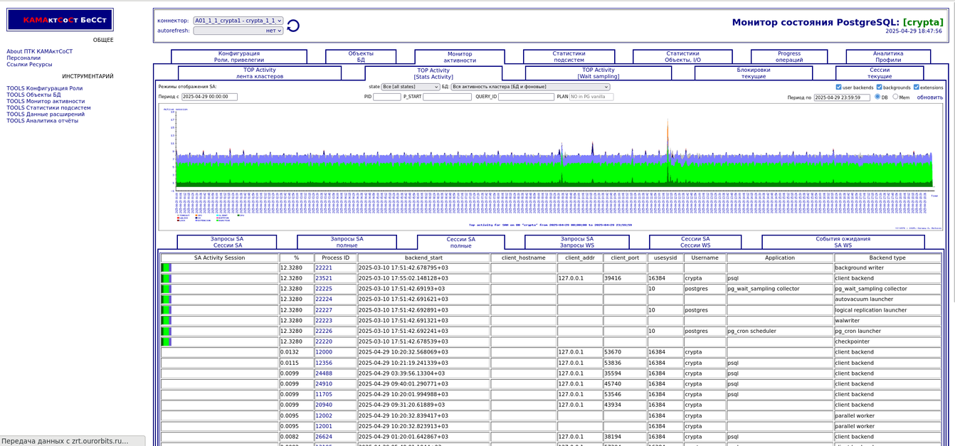 Компонента "TOP Активности". Разрезы по запросам, сессиям,