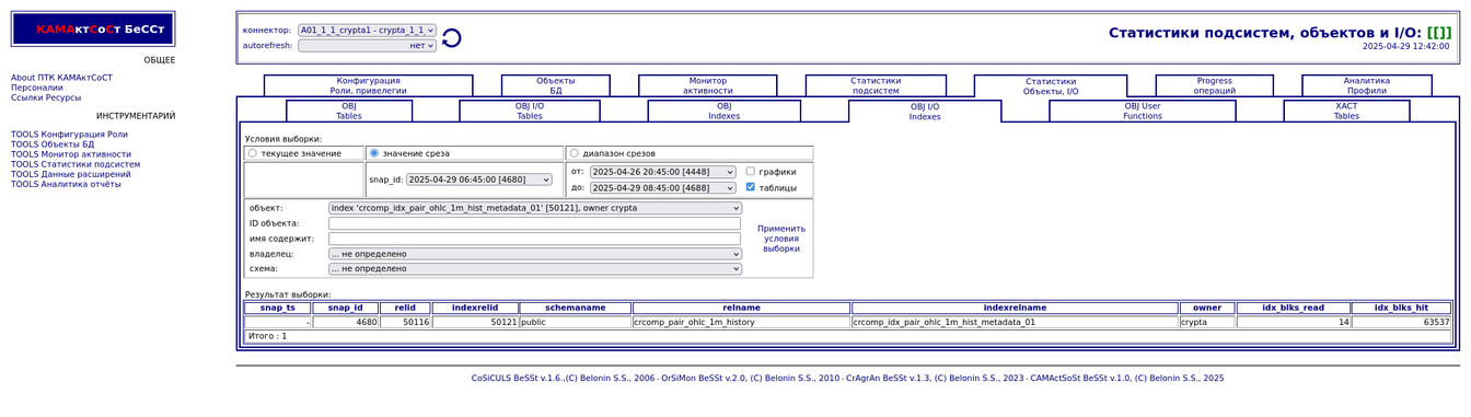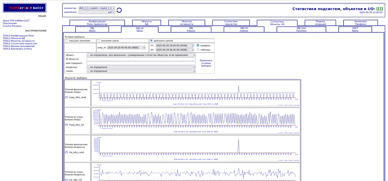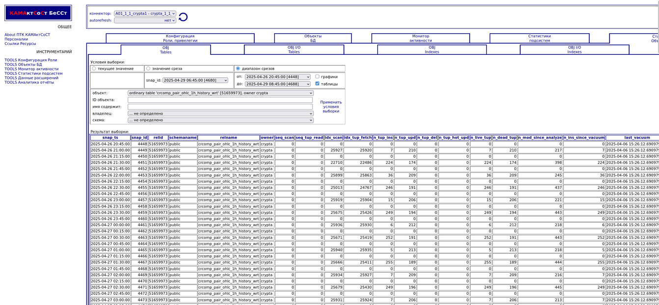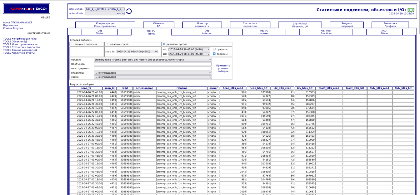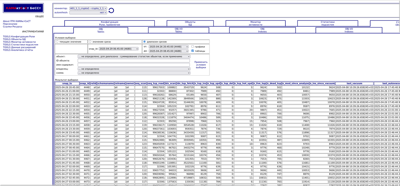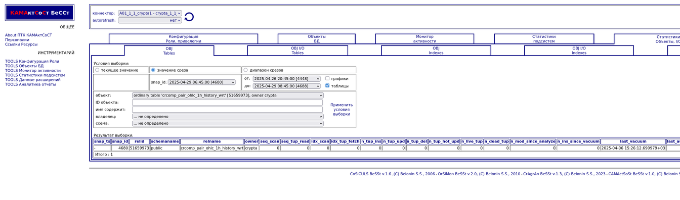 Компонента "История снапшотов". Статистики объектов