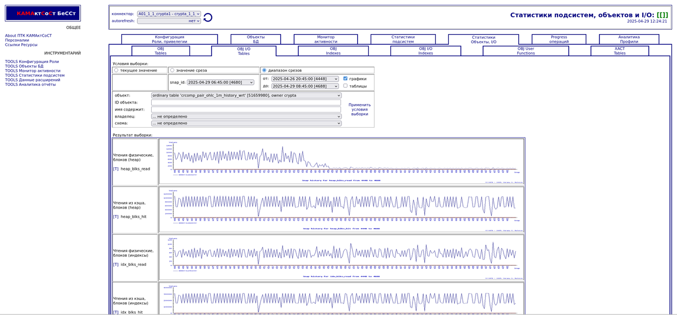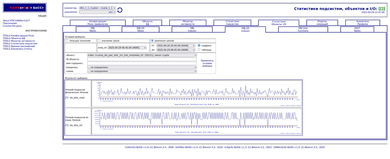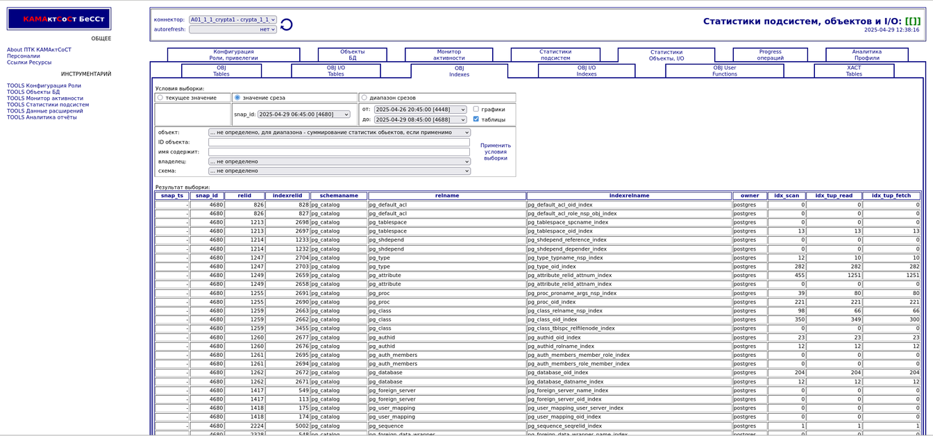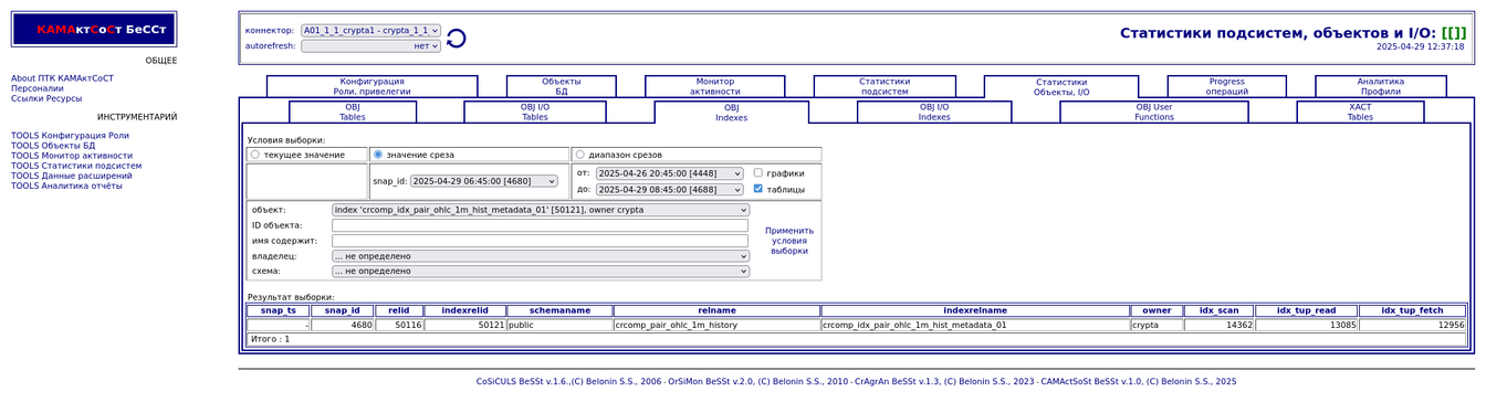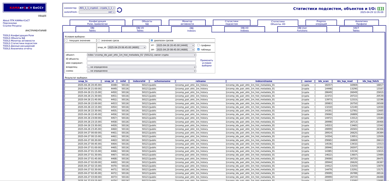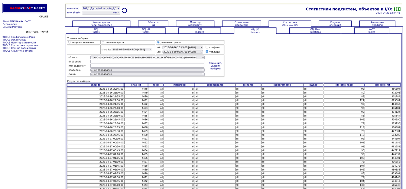 Компонента "История снапшотов". Статистики объектов