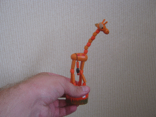 время выпускавшаяся в виде бычка с увязанными на центр - туловище конечностями. Когда я жму на подпружиненную кнопку в днище основания, дляна нити в конечностях игрушки увеличивается,